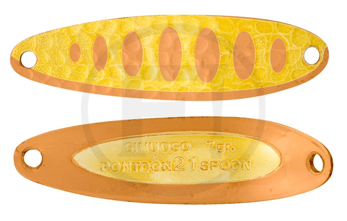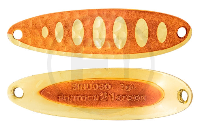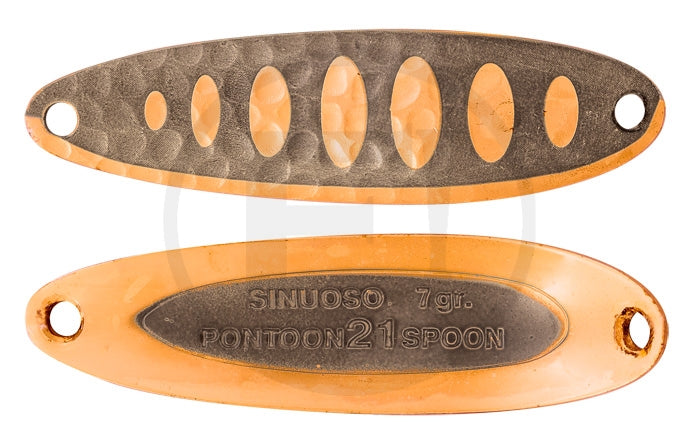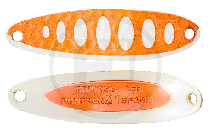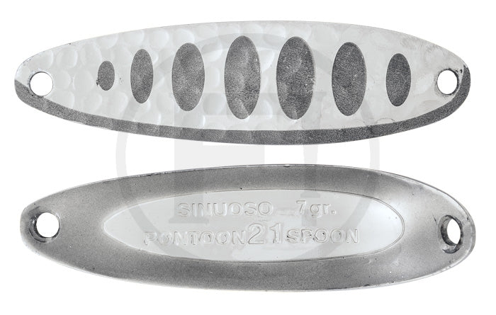 Spoons are the most age and well-known type of lures. Pontoon21 adds a new step to the Spoon's evolution with developing of Sinuoso series having HSMP (High Sensitivity for Minor water Pressure) design. Sinuoso is able to "catch" and reacts on the minor water streams and play with them like active and alive creature. Thanks to magnificent body's bends Sinuoso plays at dropping even more attractive rather than various special jig-spoons or pilkers.