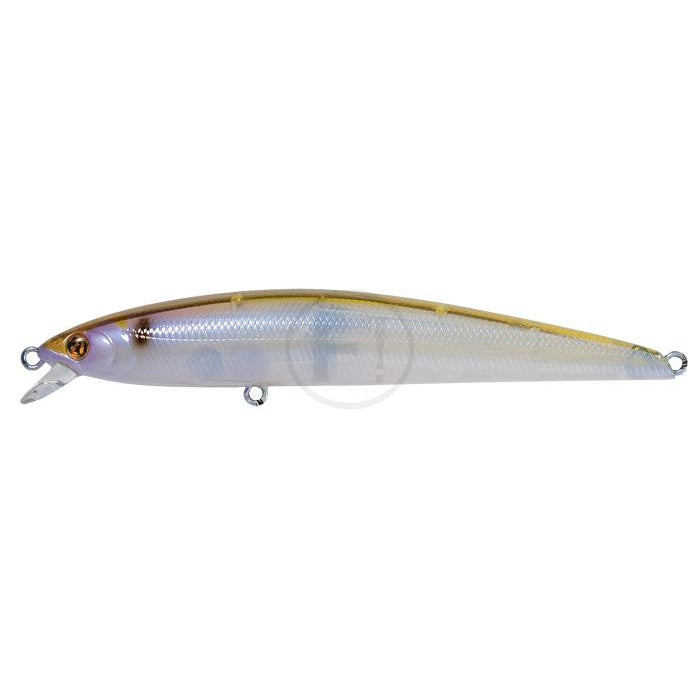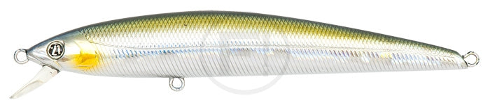 Unique features of minnow lure Agarron for twitching, jerking and any kind of inequal retrieving are the result of combination of two kinds of balancing systems in one body. The front part of body is equipped with KKBS (Koto-Koto Balanced System): heavy tungsten ball slightly moves orthogonally to the main body's axis. The system TMB locates just behind this ball. TMB consists of 2 moving tungsten balls, which move to the tail part of Agarron at casting and improve the castability. When retrieving begins these balls return to the middle part of lure and can move from side-to-side like tungsten ball of KKBS. Combination of movements of 3 balls provides unique game of Agarron at line retrieving, which you never met before.